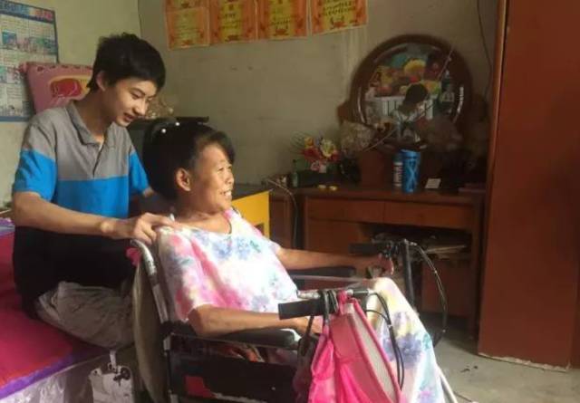 虽然他的母亲下肢瘫痪,但非常坚强,