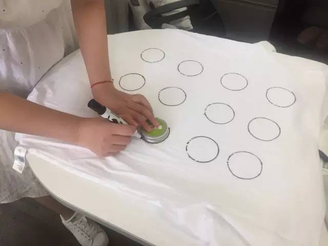将白色T恤的背后挖12个直径约6厘米的圆洞,