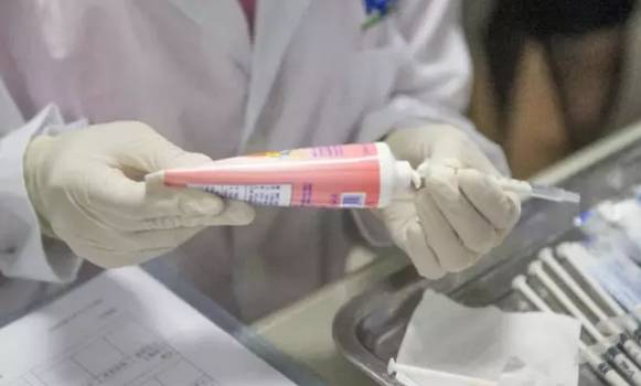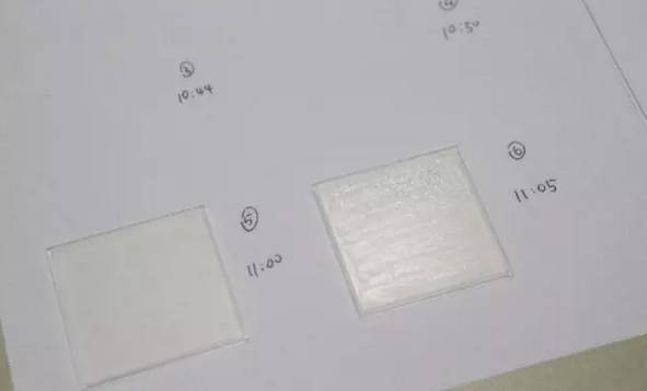 随后,负责操作的工程师戴上乳胶医用指套,将防晒霜均匀涂抹并覆盖PMMA板,将板静置15分钟,“防晒霜比较黏稠,但要尽量抹得均匀一点。”甚至,涂抹后的指套也要摘下来放入电子天平进行称重,以减去指套上的样品残留重量。静置后的样品被放入紫外线透射率分析仪内,仪器模拟紫外线照射,自动取PM MA板上9个点的样品,检测SPF值,并最终得出9个点位的平均值。