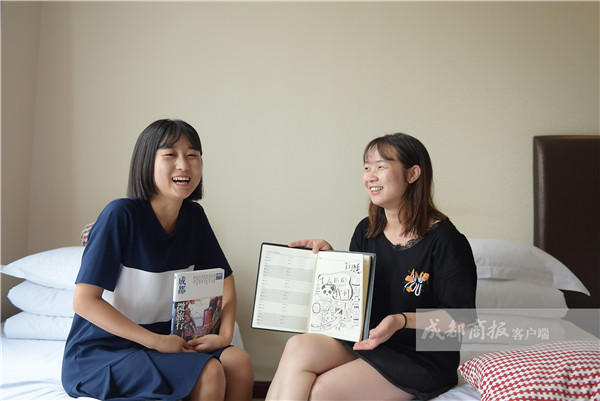 两年前的一次旅游,让佟彤爱上了成都。“当时我去了锦里、宽窄巷子和熊猫基地,火锅、小吃都太好吃了!城市也非常漂亮,非常发达。”于是,她和自己同寝室的好闺蜜班爽就计划着毕业之后来成都发展。所以,两人非常关心成都的工作动态。前几天收到成都一家互联网设计公司的面试通知之后,两个小女生开始盘算着来成都应聘。“之前一直想着怎么订酒店,有一天在师兄那里发现成都有这个青年人才驿站政策,就马上申请了。手续也很简单,收到回复之后我们就马上动身来到了成都。”