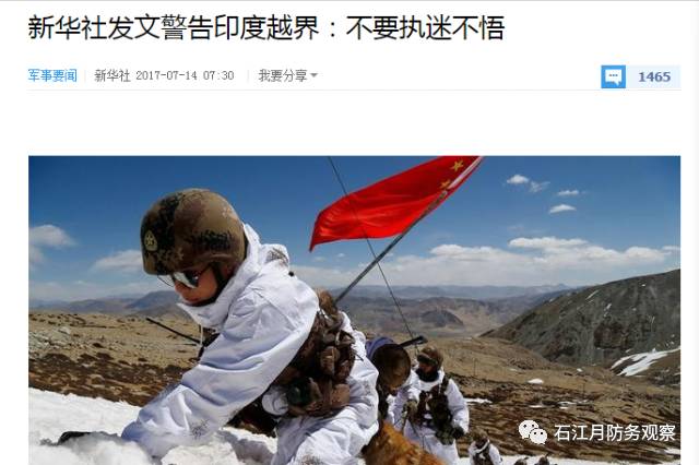 新华社这篇题为《印度不要执迷不悟》的文章称,印军非法越界几近一个月。尽管中国一再呼吁印方立即无条件将越界边防部队撤回到边界线印方一侧,但迄今印方对此置若罔闻。“我们劝告印度不要执迷不悟,陷于更大的被动”。