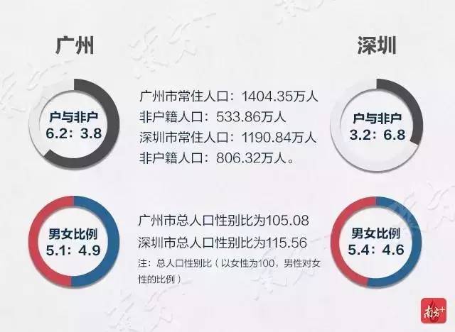 先来看看广深人口比例,广州市常住人口是1404.35万人,其中非户籍人口是533.86万人。深圳市常住人口是1190.84万人,其中非户籍人口是806.32万人。