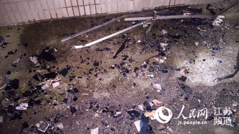 现场可以看到,房间里一片狼藉,墙体已被大火熏黑,窗户玻璃被炸裂,房间里的物品也几乎被烧毁。
