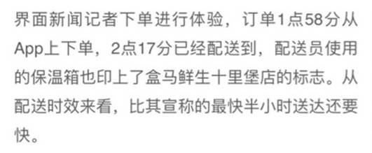 界面记者还体验了一下,比对外说的30分钟送达还要快!