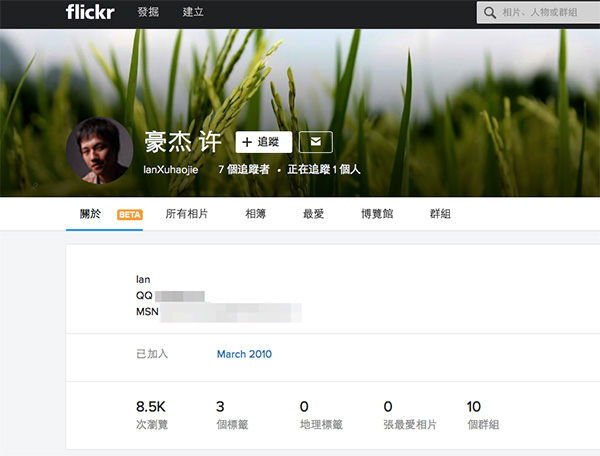 另一家查询平台“whois”显示了该网站注册方更多信息,包括qq邮箱等联系方式。记者注意到,该qq号出现在了图片分享网站flickr注册用户“豪杰许”的个人信息中。而“豪杰许”账号留有的邮箱地址,出现在了介绍为“许豪杰的bolg”的搜狐博客上个人信息中。