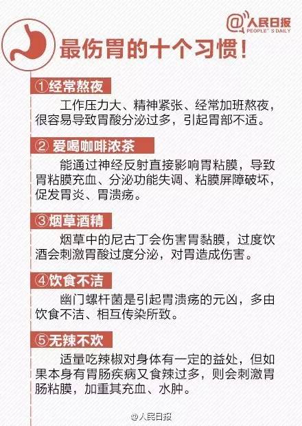 “溃疡没有及时和发现,很可能会出现消化道出血、溃疡穿孔等更严重的疾病。”他建议大家在饮食上遵循“早上吃得好、中午吃得饱、晚上吃得少”的原则,同时,晚饭尽量选择清淡、易吸收的食物,不摄入过多热量,少吃宵夜,从而减少胃肠道负担。