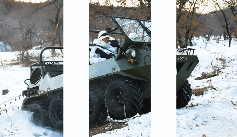 女特战队员葛芳的答案是:“当我驾驶山猫全地形车从你身边飞过,你可能会被带起的风刮倒,却绝不会被碰伤。”