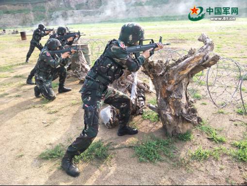 战术射击演练开始了,一声令下,迷彩的方阵瞬间解体,士兵们猎豹一般低姿占领射击位置,灵活地选择土包、树桩、轮胎作为掩体,一阵清脆的枪响,树丛中的鸟儿刚刚被惊飞,远处的靶标已经应声粉碎,腾起一片火光。
