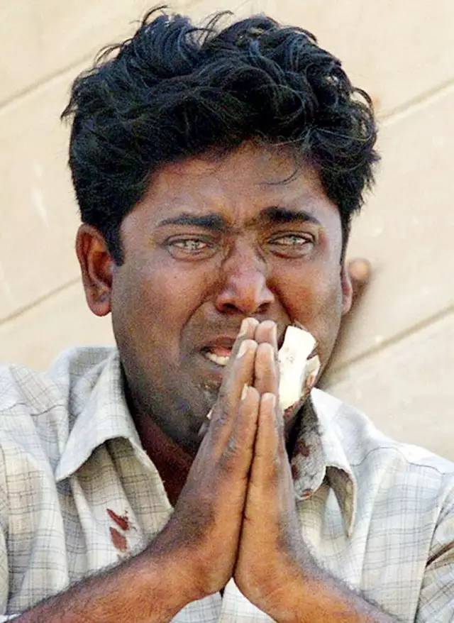 (下图为2002年古吉拉特邦骚乱中的经典照片,一位穆斯林双手合什,满脸泥土与泪水,拼命向军警乞求解救正被印度教徒围攻的他;摄影师@Arko Dutta)