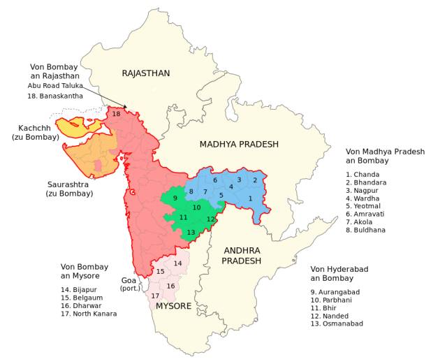 1956年至1960年的孟买邦(红线范围内)
