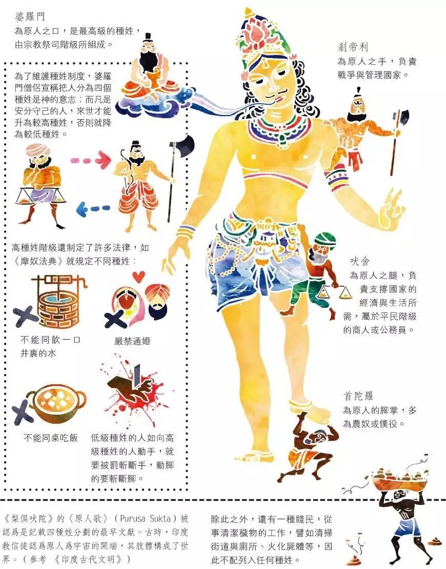 (种姓制度将今天的印度人划分为四个阶层,并严格限制高低阶层之间的交流、婚姻)