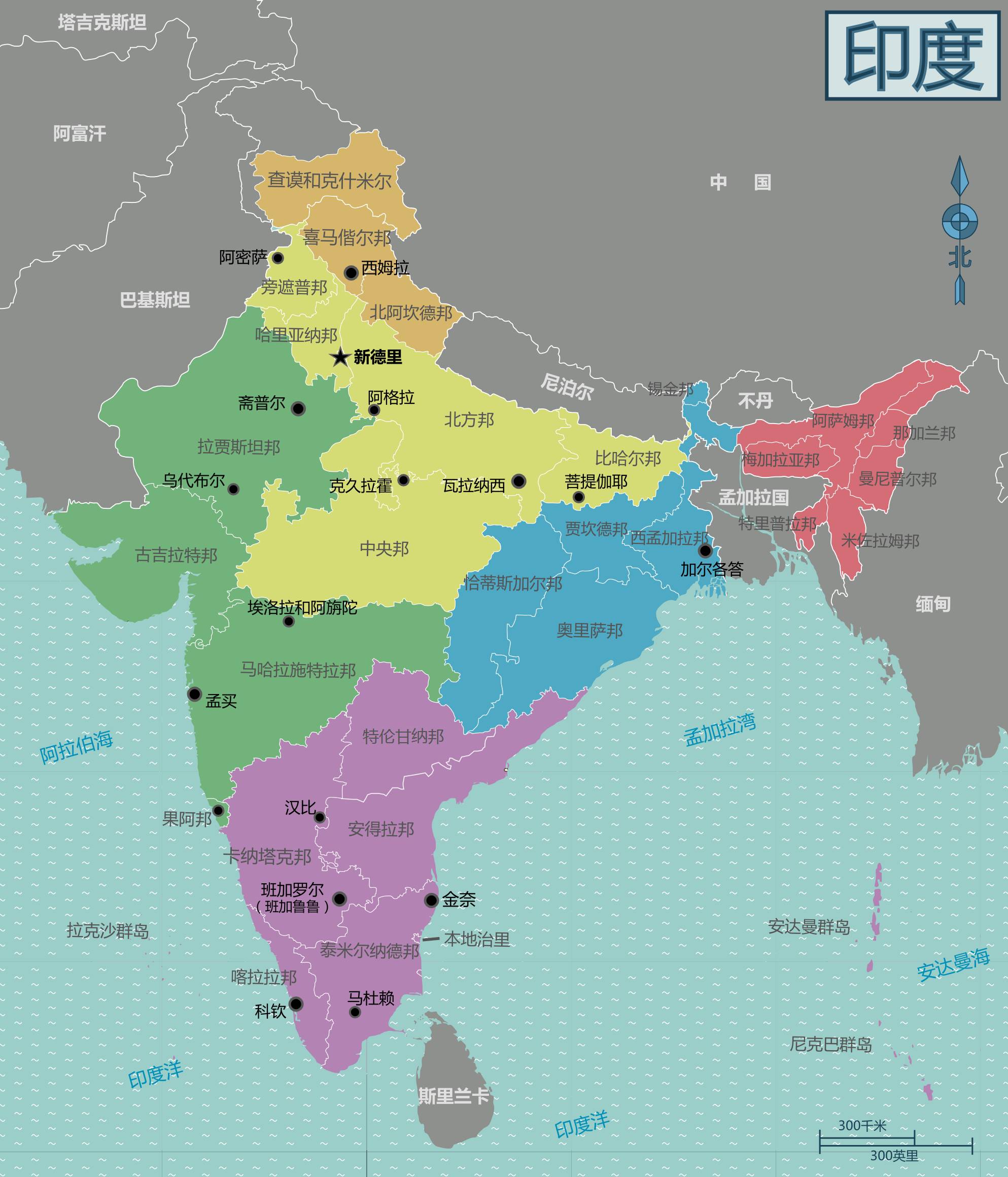 今天印度的国土范围