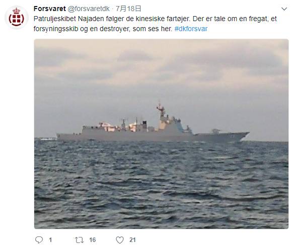 ▲丹麦国防部在其官方推特发布消息,三艘中国海军军舰在驶往波罗的海的途中穿过丹麦水域。