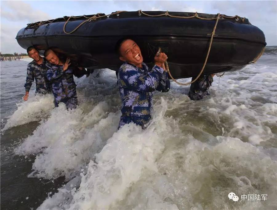 ▲2016年6月30日,海军陆战队某旅组织两栖蛙人进行特战科目训练,图为扛举橡皮艇 尚文斌摄