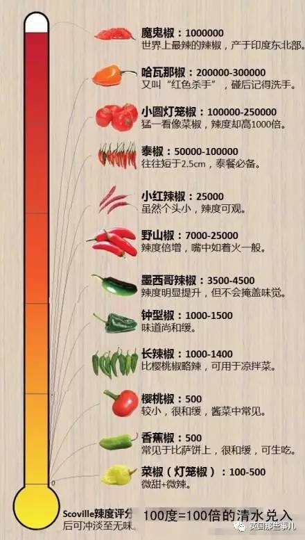 鸟眼辣椒的辣度大概有200,000史高维尔,跟世界排名第二的哈瓦那椒不相上下。