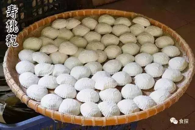 寿桃籺是当地居民在新年和正月结束的时候会做的籺。顾名思义,寿桃籺是做成寿桃形状的,通常会有一个固定的籺模,里面雕刻出寿桃的轮廓及精致的花纹,做籺时把包好的籺往籺模里按,再倒出来时就成了背面平滑,正面饱满,就像一个大桃子从中间切为两半的样子。