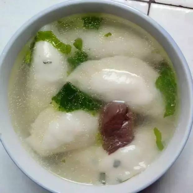 通常人们会先熬制好汤底,然后再放入籺去煮,起锅时撒上香葱香菜。韭菜与香浓的汤汁结合,口感韧软,我觉得我能吃上五个那么多!