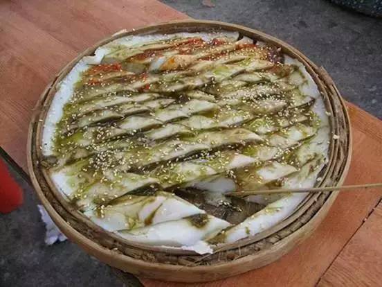 簸箕炊,因其采用竹篾编制而成的簸箕为盛具而著称。将磨成桨的米粉放置于簸箕当中,待一层熟透后再逐渐添加,一般都有三层以上,最后成型。待米粉全熟后,用小刀将其剐成格状,以方便食客食用。簸箕炊可以蘸酱油加香油或者特制的酱食用,入口细腻富有弹性。