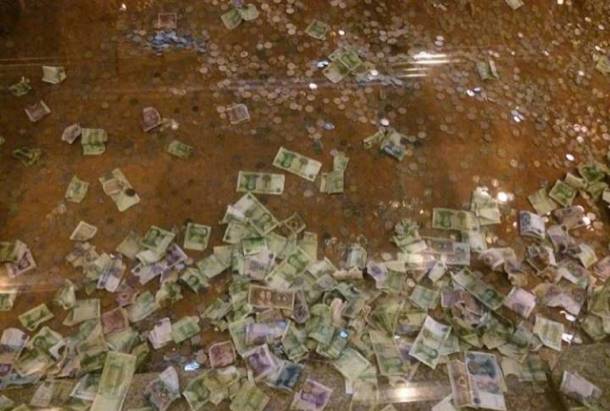 6、雷峰塔遗址被扔成钱山 工作人员无奈:真没办法了 杭州雷峰塔遗址,正经历被“砸钱”的烦恼,甚至有游客支付宝转旁人换硬币往里扔的。尽管玻璃围墙高2米,不过上方留有空间,“保护遗址请勿抛物”的警示标语也只是摆设。景区工作人员无奈:“确实没招了,也不好硬来。”(@钱江晚报)