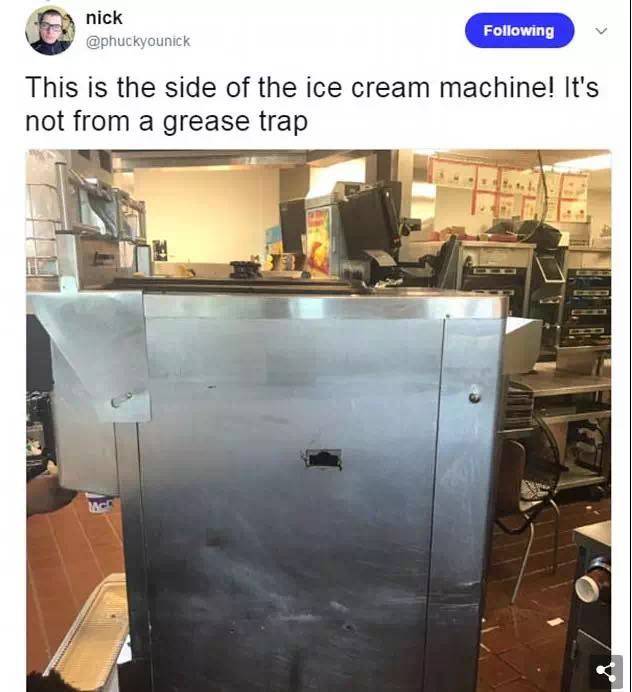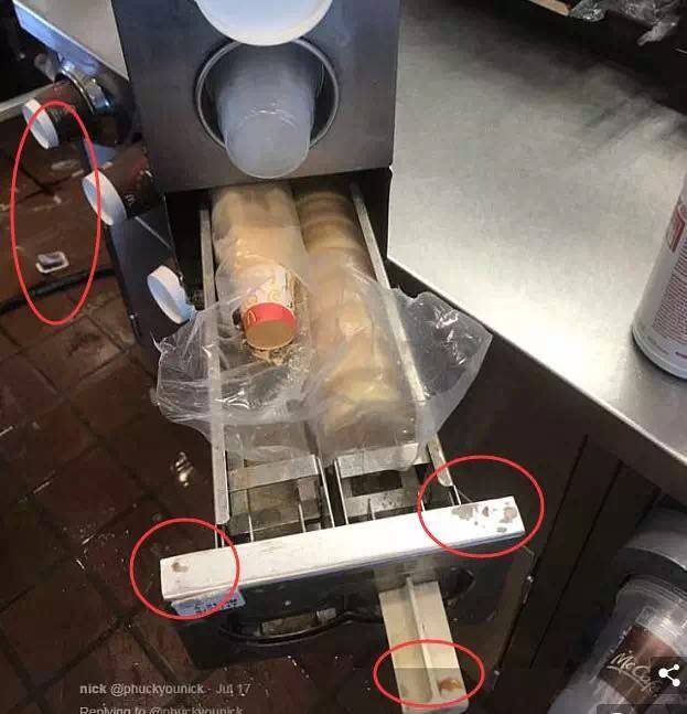 美国男子Nick在其Twitter上发照片称,这是麦当劳冰淇淋机上的零件。