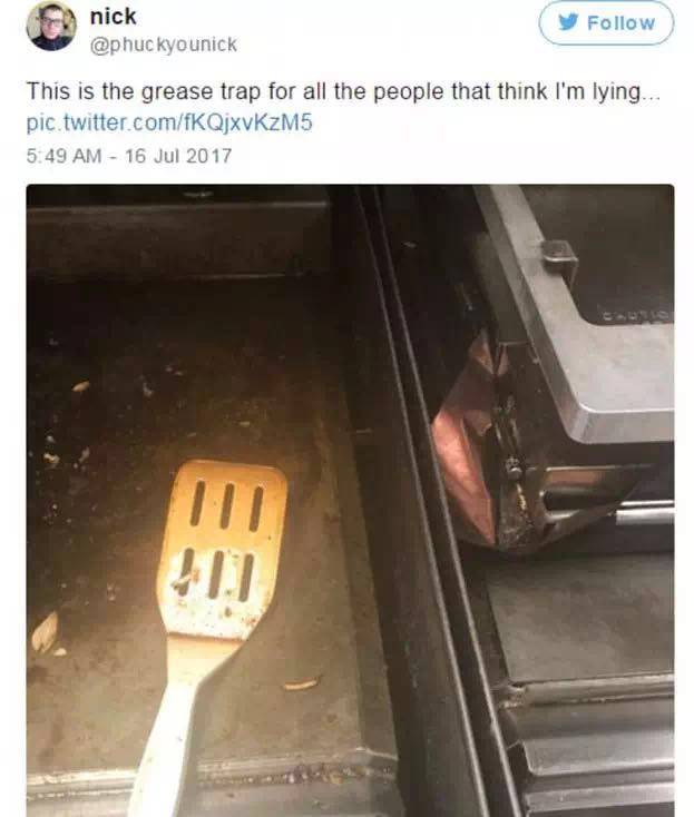 有网友看到绿色的霉菌后,不相信这来自冰淇淋机,认为是隔油池的残渣,但Nick再次上传冰淇淋机另一面的照片,证明这并非隔油池。