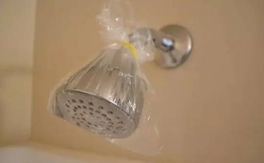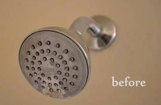 淋浴头用久了污渍缠身,只需一招轻松搞定,用保鲜膜包上小苏打和白醋的混合溶液,裹在淋浴头上用皮筋扎紧,2小时后再清洗,淋浴头焕然一新。