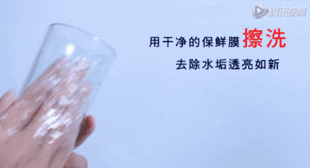 清 洗 杯 子用保鲜膜擦拭玻璃杯,它的摩擦力可快速去水垢,同时擦干净上面的唇印和指纹,让杯子透亮如新。