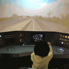 博物馆二楼停放着一列几十米长的高仿真分节地铁模型,车头处是“模拟驾驶室”,小朋友可以在此扮演地铁驾驶员,车尾是应急安全演练车厢。