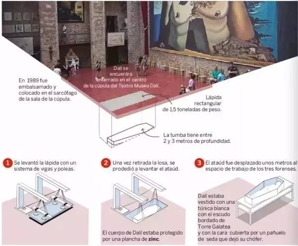 为了打开达利的棺椁,人们不得不撬开博物馆大厅中央重达1.5吨的地板。
