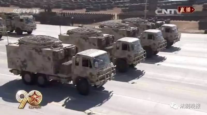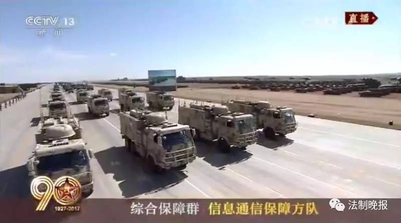 由信息通信保障方队、工程防化保障方队、后勤保障方队、装备保障方队组成的综合保障群接受检阅。
