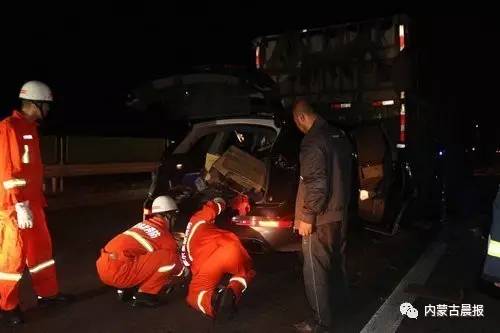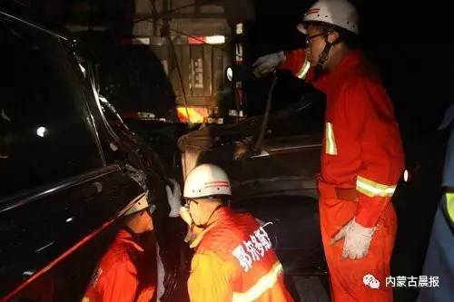 内蒙古晨报全媒体平台(记者 王宇 通讯员 雷建 摄影)7月31日凌晨01时10分,鄂尔多斯市准格尔旗大路新区呼准高速84公里处发生两车追尾事故,一辆奥迪轿车在行驶中撞上一辆半挂车,导致轿车内一人被困,受伤严重,情况十分紧急。