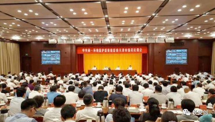 (图:中央第一环境保护督察组向天津市反馈督察情况。)