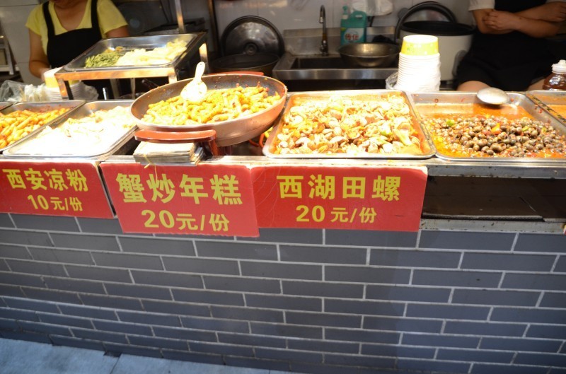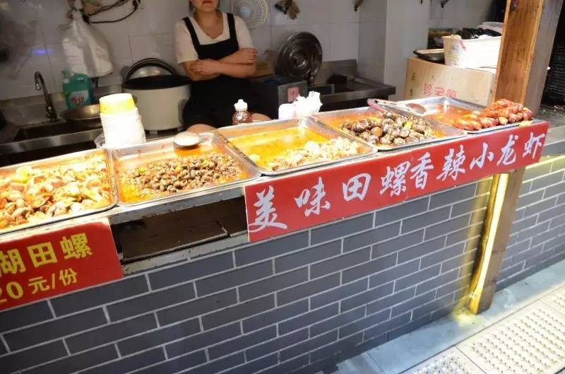 我在河坊街逛了四条小吃街,发现了7个买螺蛳/田螺的小吃店。