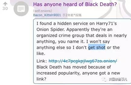 “有人听说过黑色死亡团体嘛?这是个有组织的黑社会团体,什么都干。关于它的其它信息我就不说了,我不想被杀.. 因为太火了,它们已经换地方了,有人有新链接吗?”