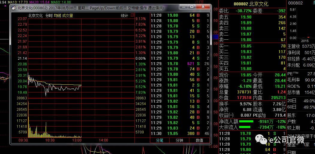 然而,北京文化今日早盘低开,盘中一度跌逾7%,截至上午收盘跌逾6%。