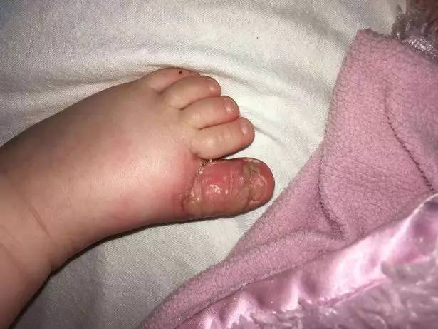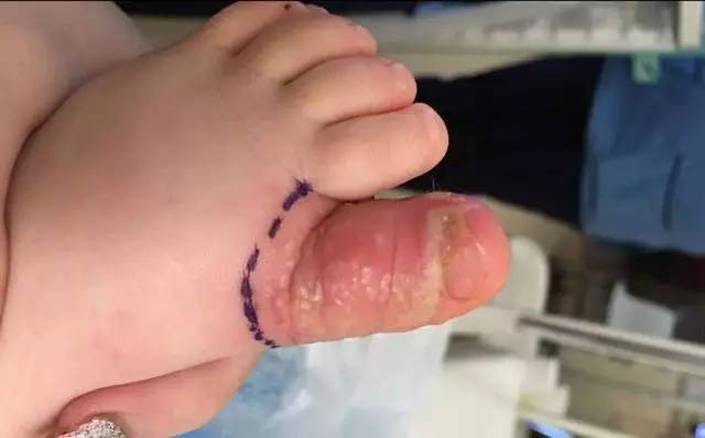 而这个时候,他们才发现Aria的大拇指又红又肿,甚至开始溃烂。