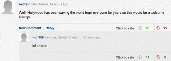 “呵呵,好莱坞已经拯救世界太多年了,我们很欢迎这样的改变!”