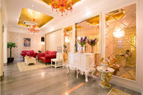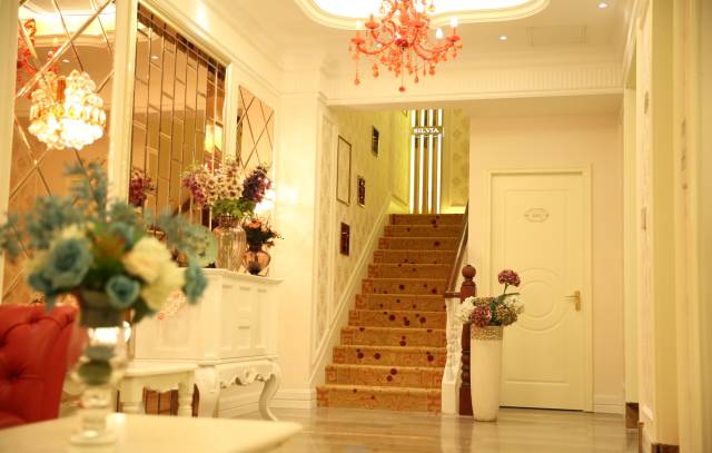 一进门,水晶灯,陶瓷杯,舒缓的轻音乐