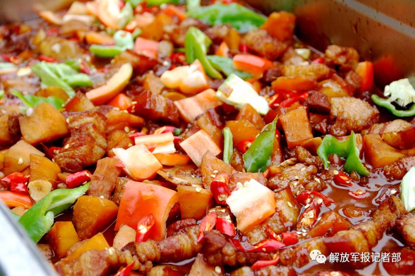 NO!NO!NO!这顿大锅菜,只不过是基层官兵最普通的一日三餐,由基层炊事员在考核时做出!万万没想到吧~更好吃的还在后面呢~看官和吃货别急,接着往下。
