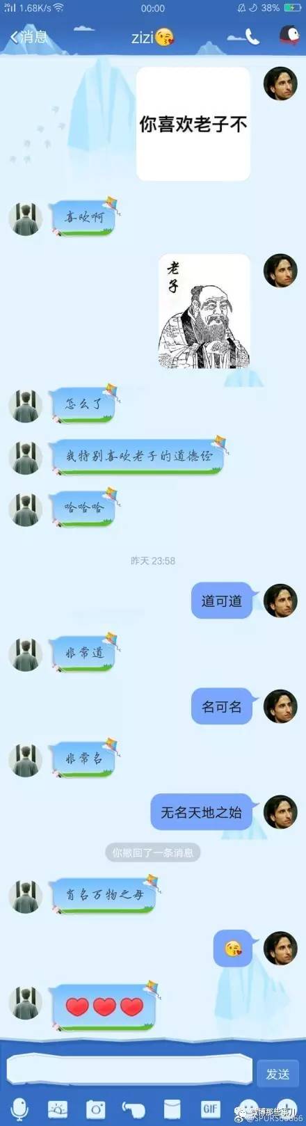 给朋友发条消息说"你喜欢老子不",