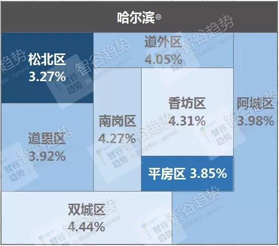 ⑩ 哈尔滨:回报率最高二线城市,租金回报率分布也随意。