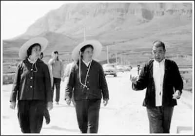 吴桂贤、李素文(中)、陈永贵在大寨