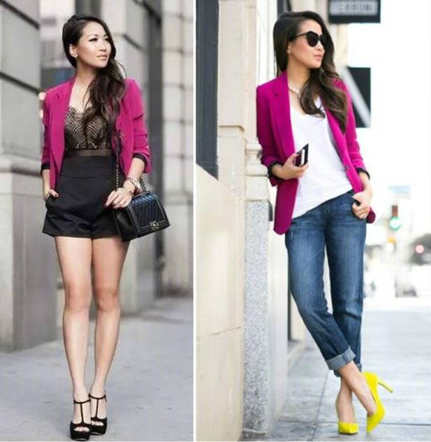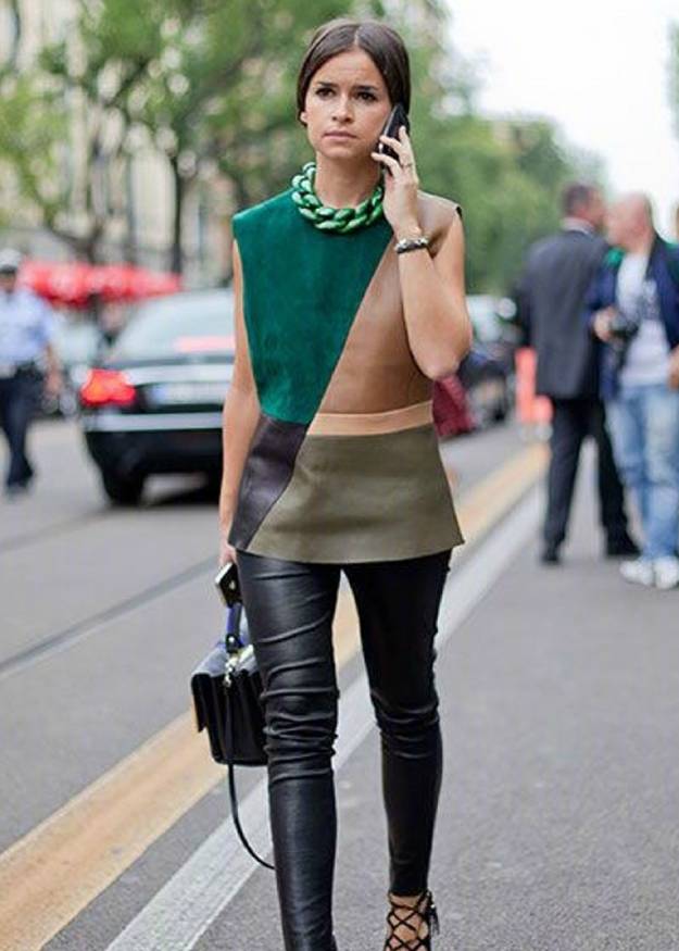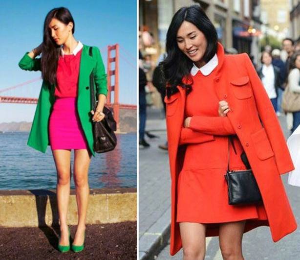 时尚博主Wendy 早期街拍里,有很多高饱和度颜色,还撞色。