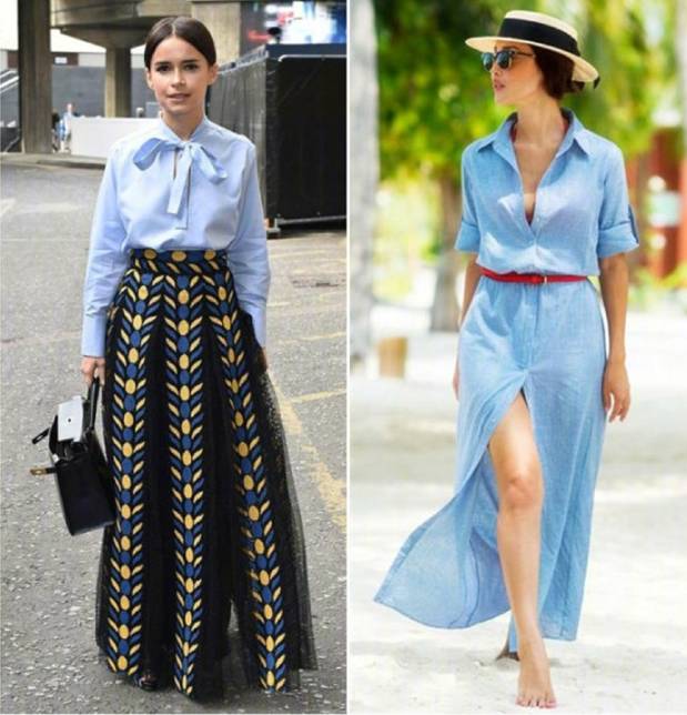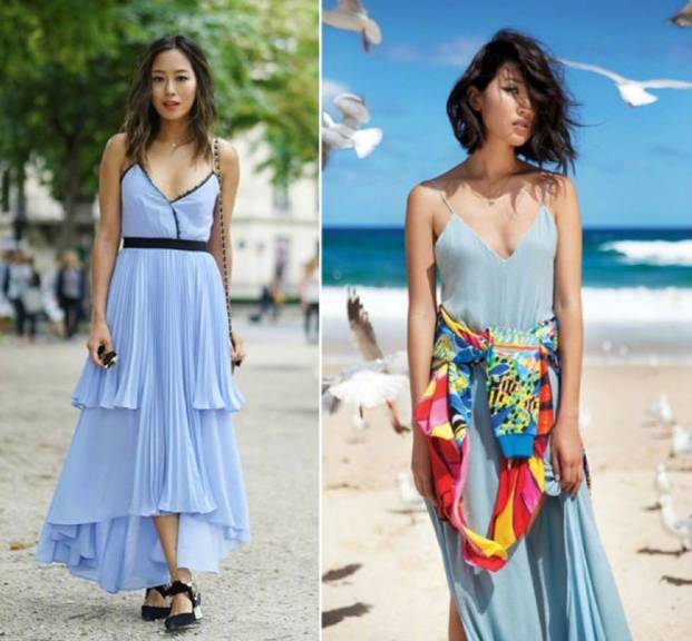 浅蓝色夏天比较多见,不仅显白,还很清爽。