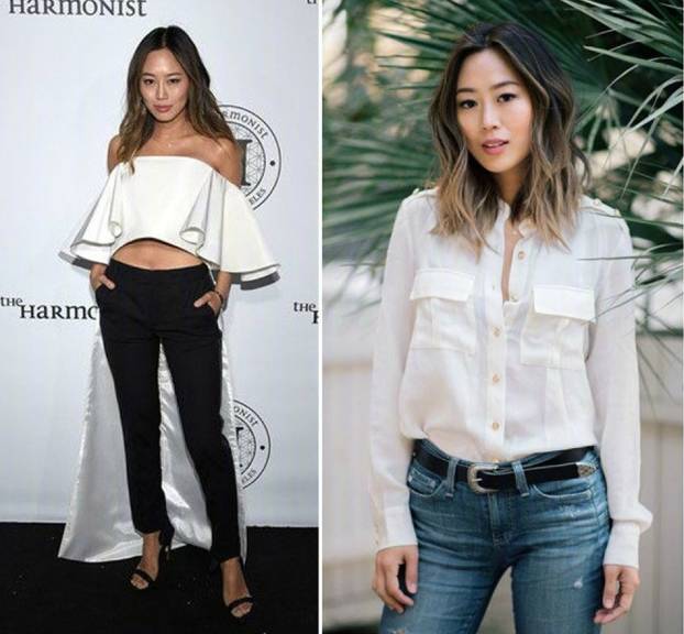 两位示范博主都是黑黄皮妹子 —— 左边是亚裔欧洲时尚博主 Nicole Warne,右边是亚裔美国博主 Jamie Chung