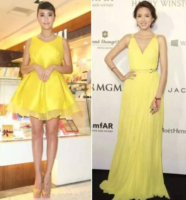 对咱们亚洲人来说,低饱和度的颜色更适合。皮肤偏黑的张梓琳穿浅黄色敲好看。