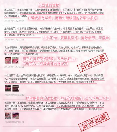 眼罩的蒸汽和体温略高的温度。能很好的促进氧分子的吸收,跟眼部进行深度护理。