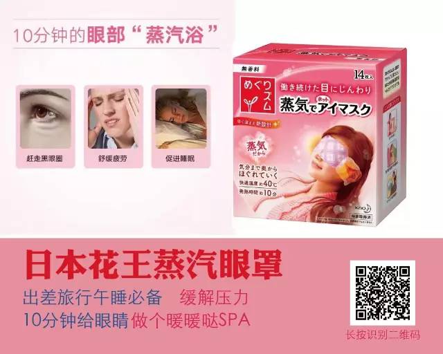 花王蒸汽眼罩是一款荣获日本最优秀制品奖的蒸汽眼罩,在日本广受好评!舒缓疲劳,增加血液循环,从而减淡黑眼圈。