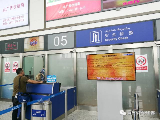陪同采访的和田机场副总经理杨博向记者介绍,机场正在运行的所有值机柜台、安检通道和登机口均设置了“军人依法优先”标志牌,这也意味着边防官兵在任何一个通道都能享受优先待遇。