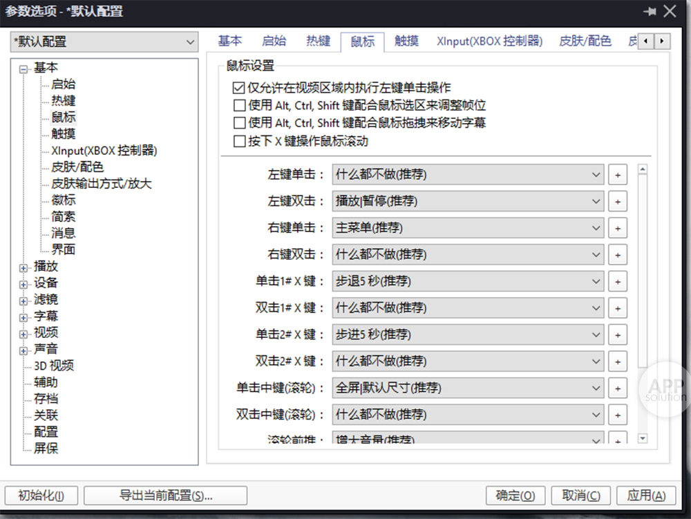 操作多样、快捷 PotPlayer 为我们提供了超级多样的操控方式, 你几乎可以为所有播放、设置项目设定键盘快捷键,尽管绝大部分你并不会用到。 更为强大的是, 即使是只有 3 个按钮的鼠标,也拥有多达 14 种的快捷键设置。